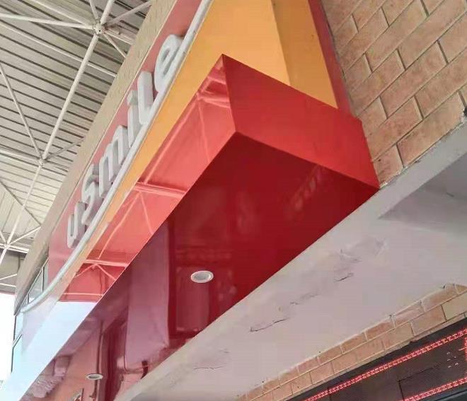 徐州市贾楼加油站便利店铝塑板门头维修。高光铝塑板