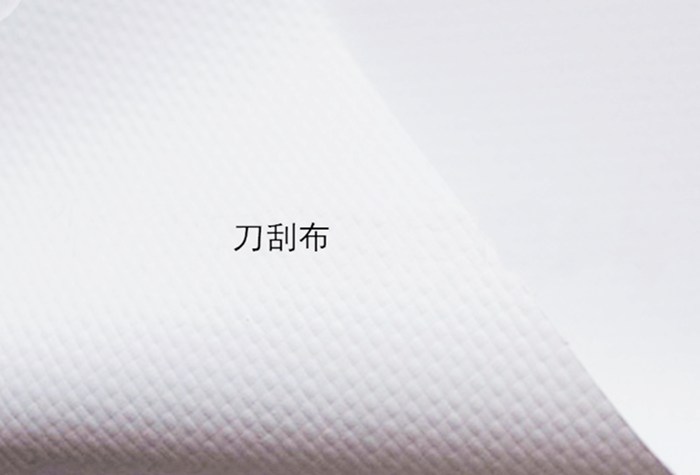 刀刮布是由pvc膜为基础材料经过上下两面来成型的,夹层中间添加了导光纤维贴,再由热辊转动的压力下成型,然后将三层材料一起复合冷却成型