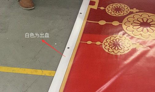 我们看上图可以直观看到画面白色部分是没有喷绘颜料的就是出血部分,同时出血部分打扣了,便于喷绘拿去拉扯安装固定。