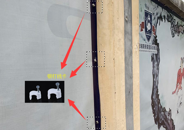钢钉线卡安装喷绘在墙上