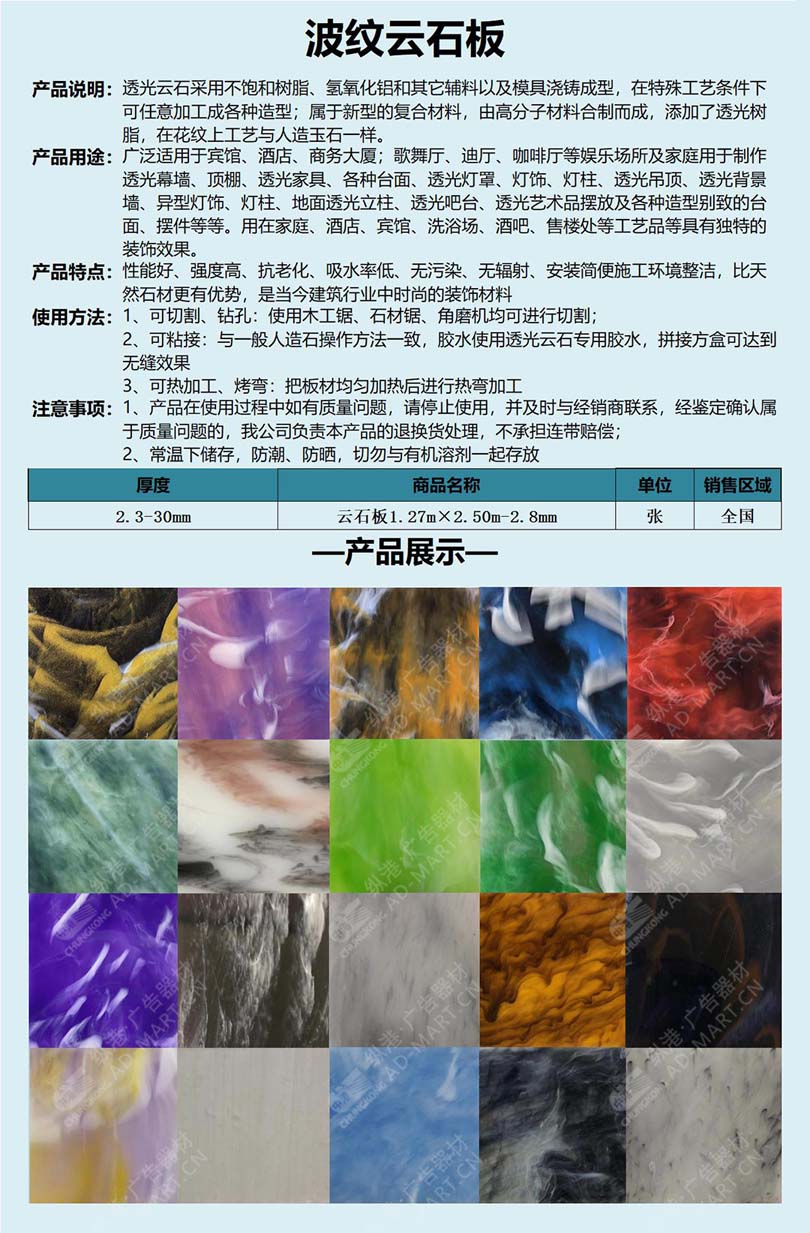 波纹云石板 亚克力云石板 1.27m×2.50m