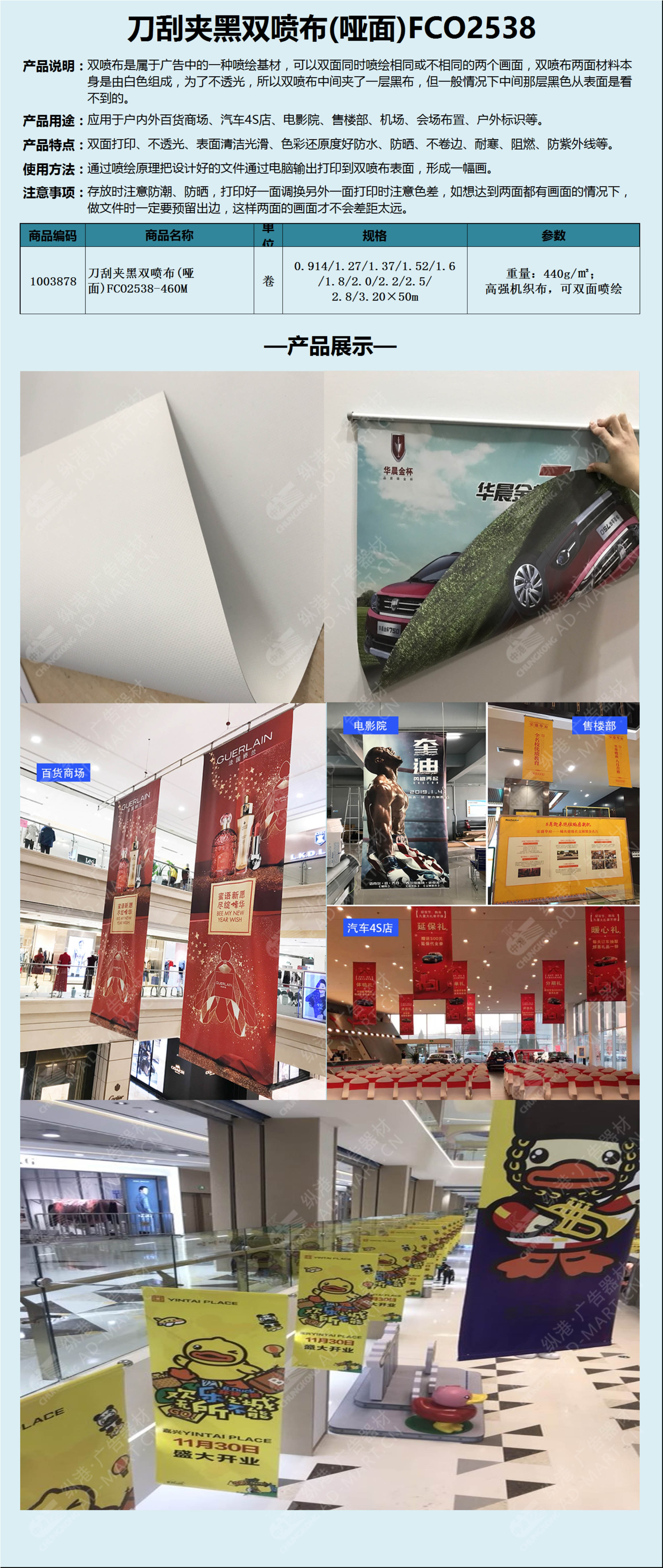 刀刮夹黑双喷布440g商场吊旗吊幔房地产4S店开业