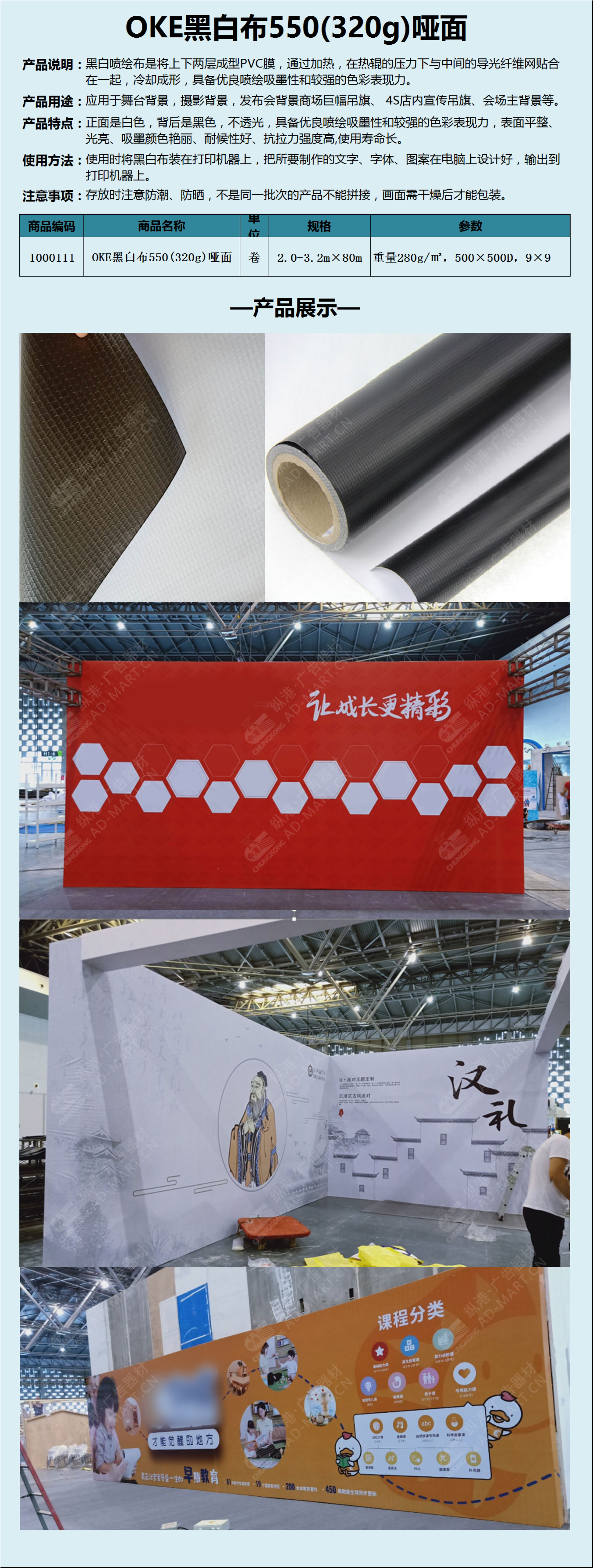 OKE550(320g)哑面黑白布黑底布桁架布舞台背景布