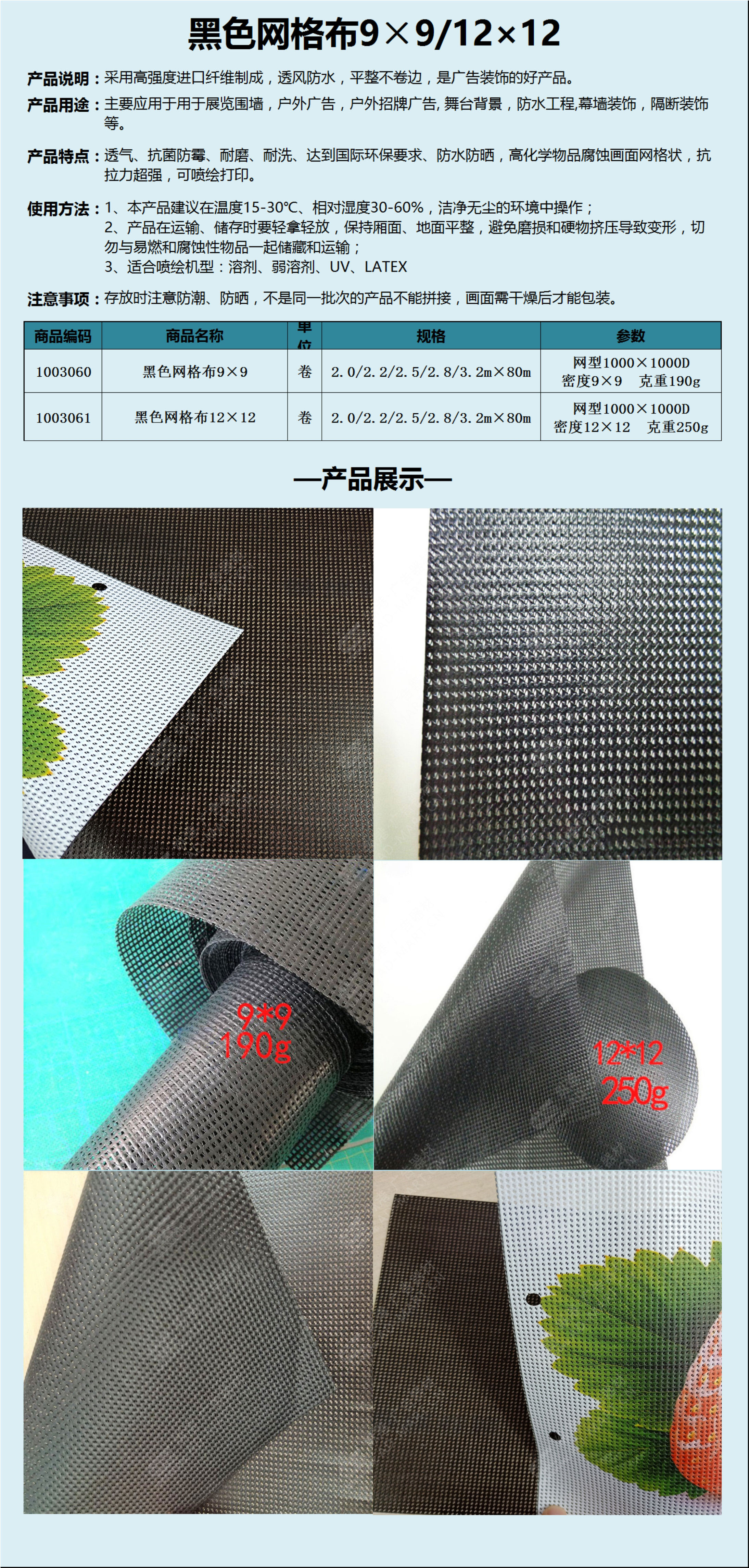 黑色网格布9*9/12*12B级阻燃190g大网孔250g小网孔