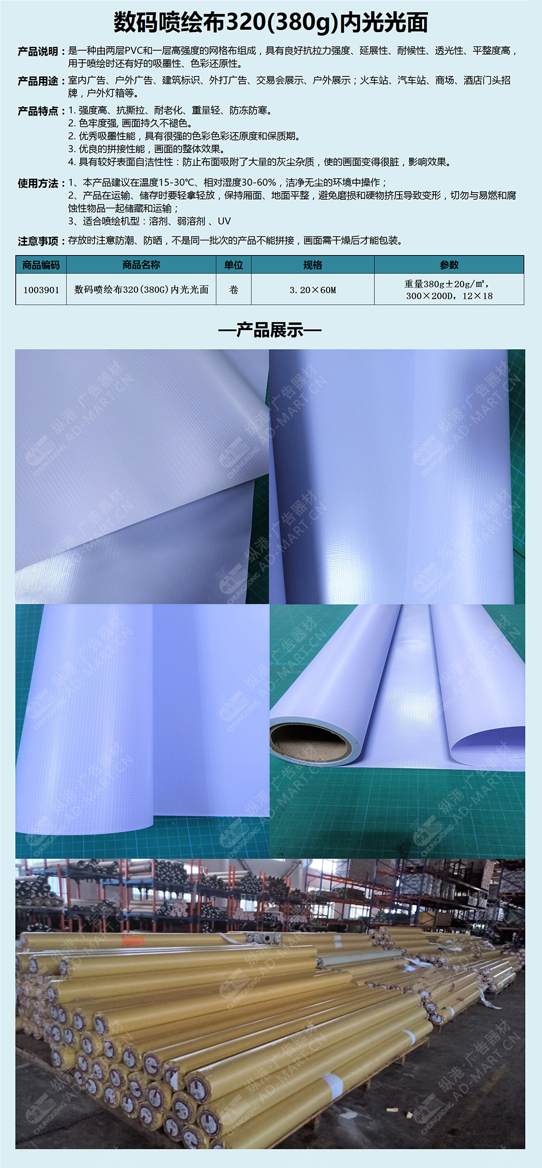 数码喷绘布320(380g)内光光面背打灯门头招牌布户