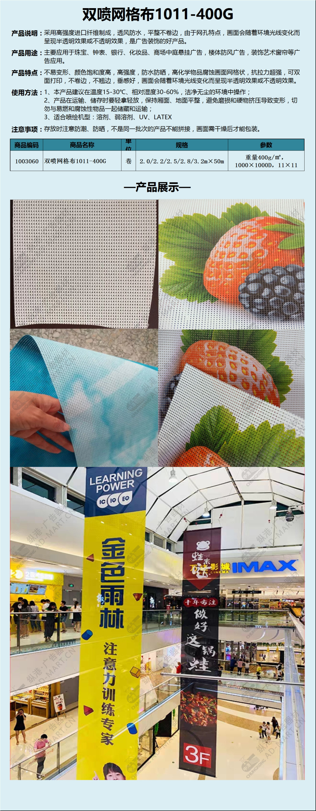 双喷网格布B级阻燃400g小网孔双面半透网格布吊旗