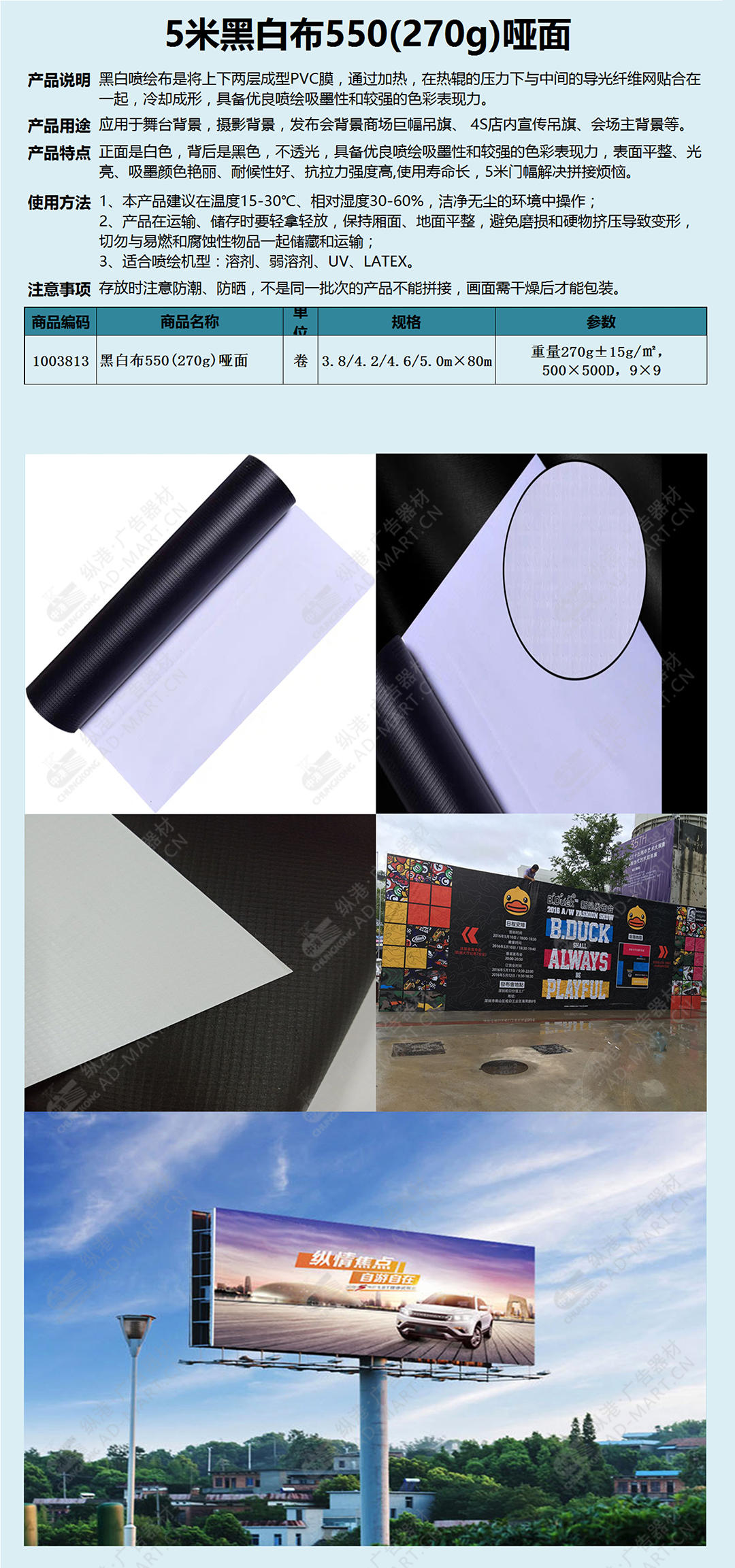5米宽幅黑白布550(270g)哑面黑底布桁架布舞台背景